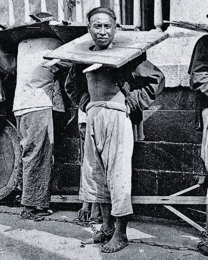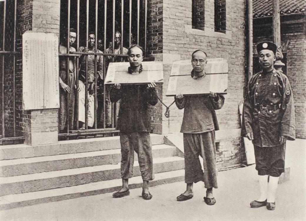 "As from the nature of the cangue it is impossible for the wearer to reach his mouth with his hands, he is dependent absolutely for food and drink upon the kindness of others. Those with neither relatives or friends are in sore danger of dying through exhaustion or starvation." (“A History of Torture” by George Riley Scott)