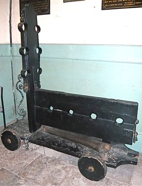 Finger stocks were also used in churches for minor offences, like not paying attention during a sermon. An example still survives in the parish church of Ashby-de-la-Zouch, Leicestershire, England, as shown in the last two pictures below.