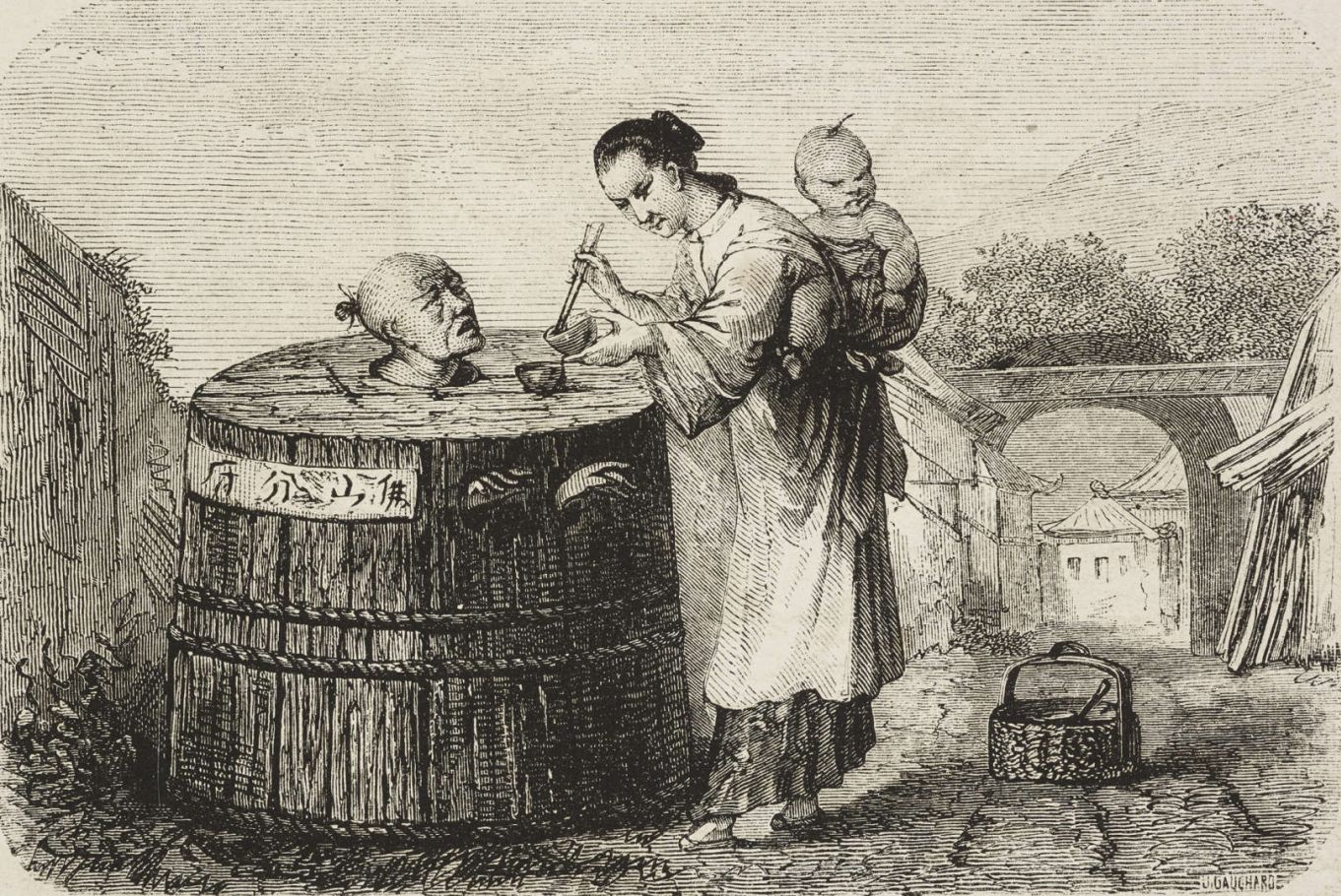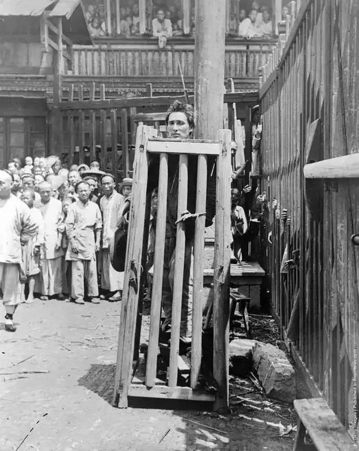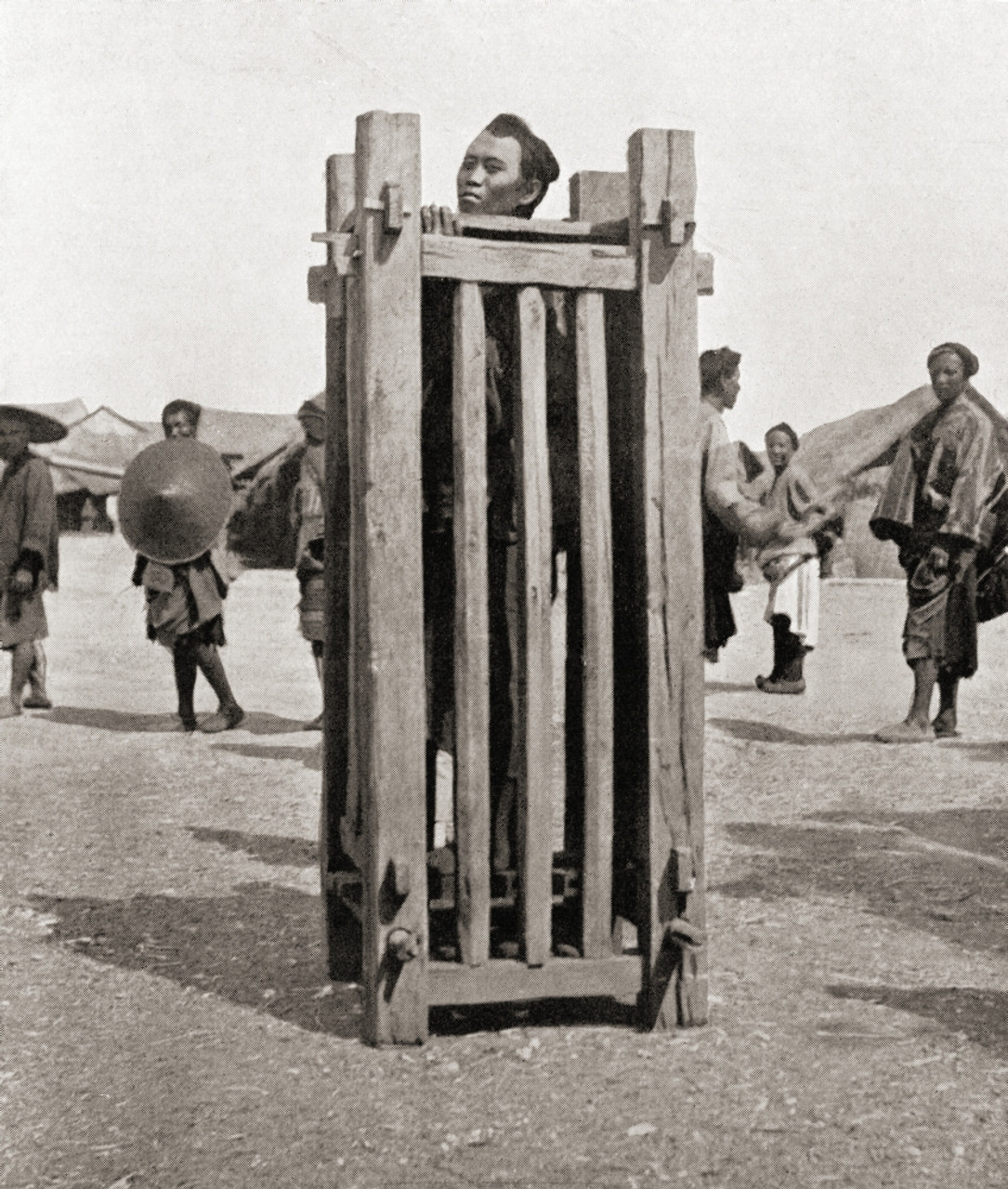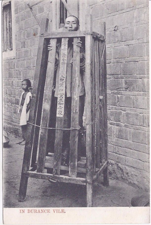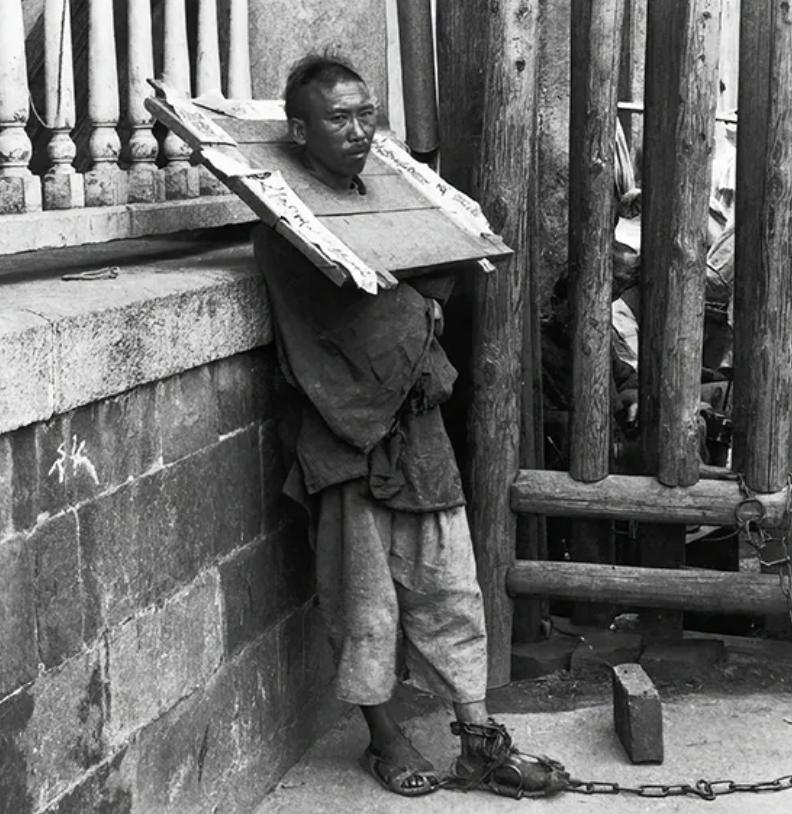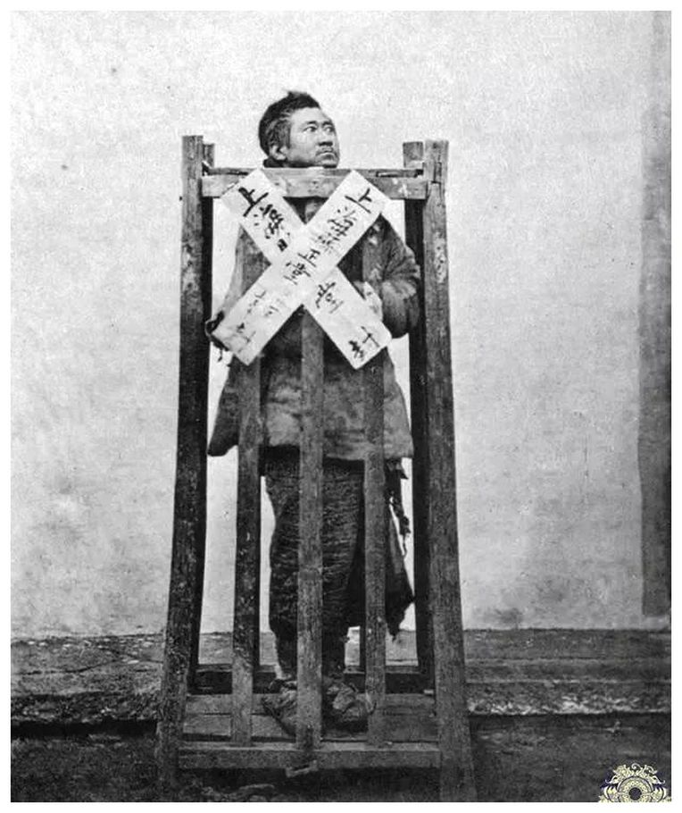 "As from the nature of the cangue it is impossible for the wearer to reach his mouth with his hands, he is dependent absolutely for food and drink upon the kindness of others. Those with neither relatives or friends are in sore danger of dying through exhaustion or starvation." (“A History of Torture” by George Riley Scott)