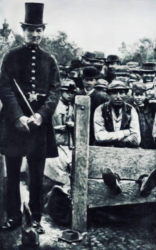 The last recorded instance of the stocks being used in England was in Newbury in 1872. According to a contemporary account, “Mark Tuck, a rag and bone dealer, who for several years had been well known as a man of intemperate habits, and upon whom imprisonment in Reading gaol had failed to produce any beneficial effect, was fixed in the stocks for drunkenness and